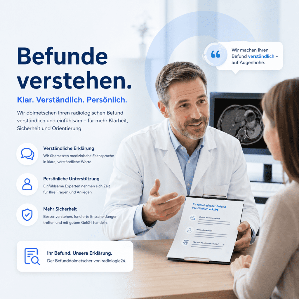 Ein Befunddolmetscher hilft dabei, einen radiologischen Befund verständlich einzuordnen. Im Mittelpunkt steht nicht eine neue medizinische Beurteilung, sondern die nachvollziehbare Erklärung des bereits vorhandenen Befundes.